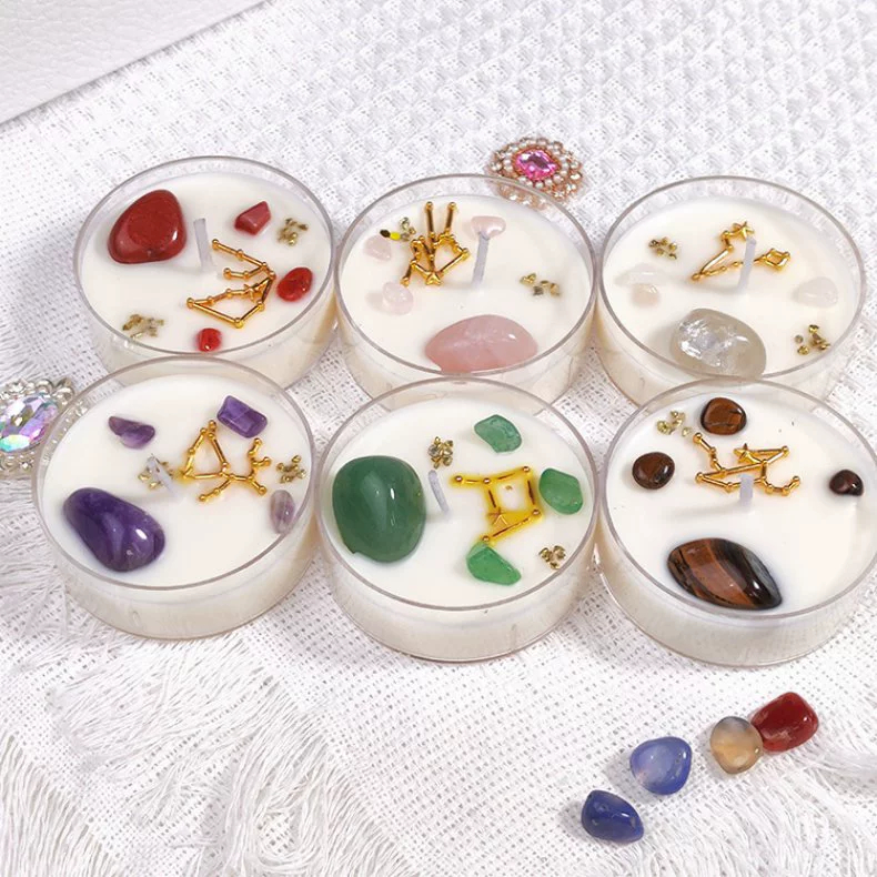 Đá pha lê tự nhiên: Giúp thu hút năng lượng tích cực và tạo hiệu ứng ánh sáng lung linh khi nến cháy.